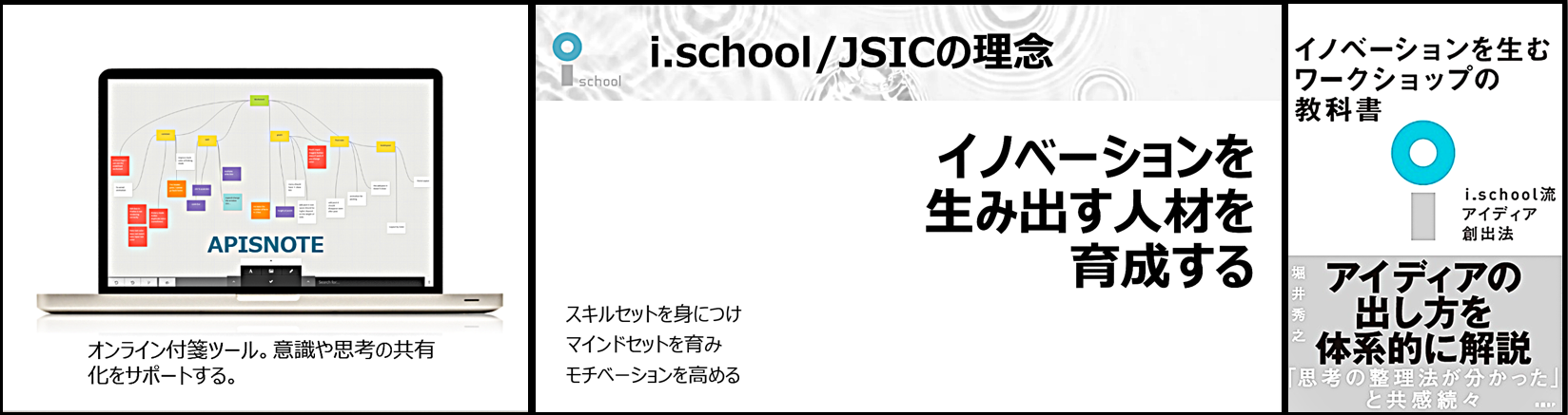 i.schoolは社会的課題を解決するアイディア創出法に焦点を当て、人間中心イノベーションを体系的かつワークショップ形式で学ぶ教育機関として2009年に東京大学で誕生しました。